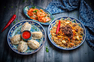 Toidud Mantõ + Usbeki pilaff + Achu-chuk
